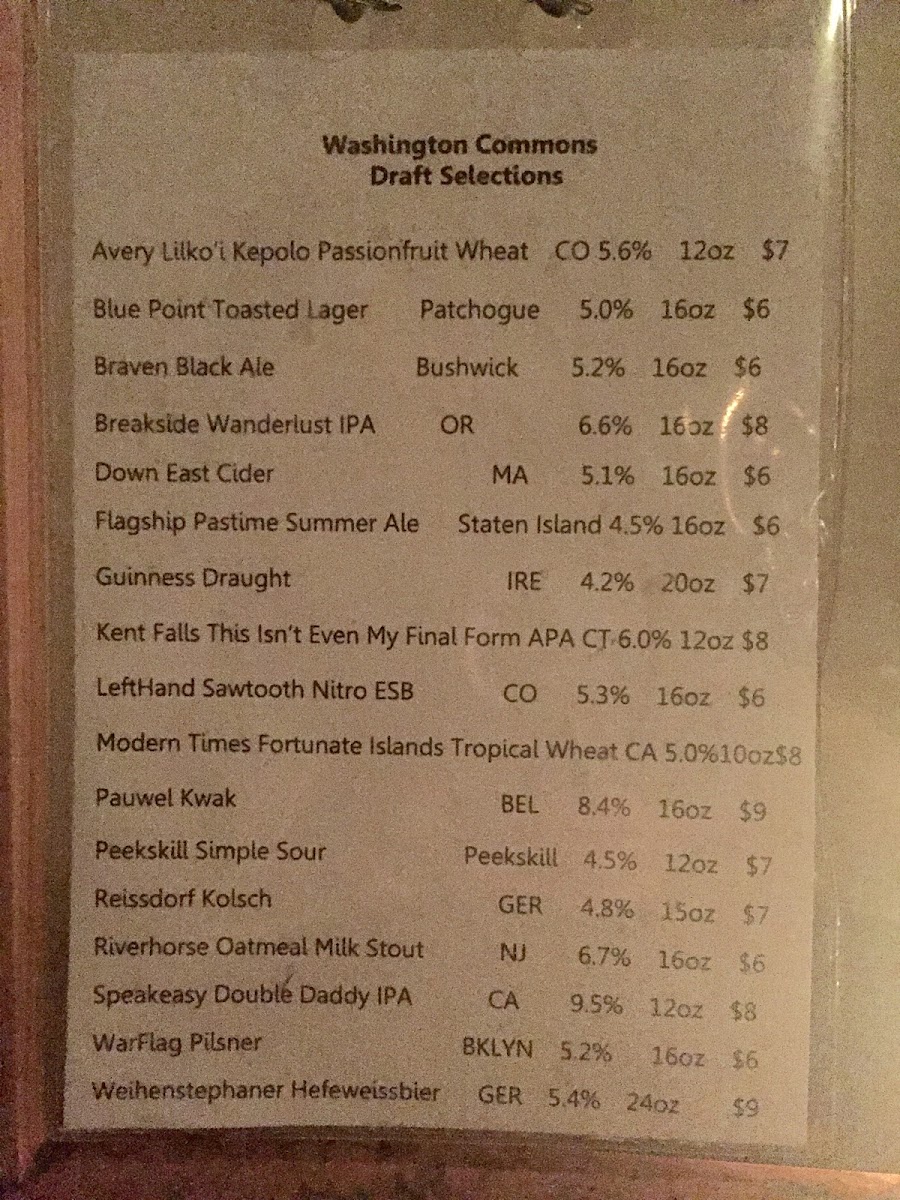 Washington Commons Menu